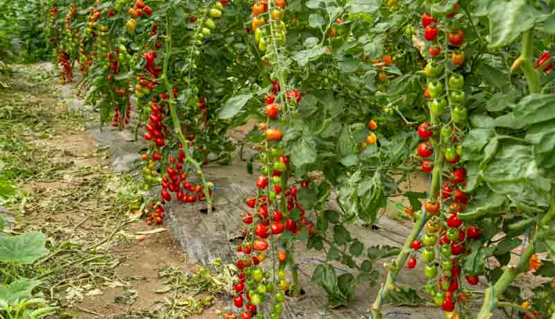 Der Blick in die Tomatenhäuser zeigt schon stark abgeerntete Cocktail-Tomaten-Sorten